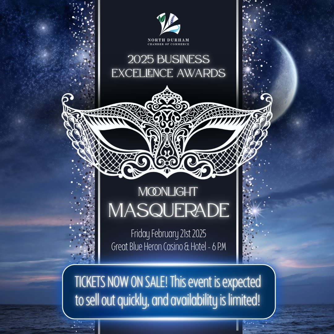 Join us on Friday, February 21st, 2025, from 6 PM to 11 PM, at the Great Blue Heron Hotel & Casino for a night of elegance, celebration, and inspiration. This year’s theme, Moonlight Masquerade, promises glittering ambience with live entertainment, captivating surprises, and the opportunity to honour the best in North Durham’s thriving business community. Here’s a closer look at the TEN categories, including two exciting new additions for 2025: Business Achievement (1-5 Employees) Honoring small businesses that demonstrate exceptional achievement, innovation, and community impact. Business Achievement (15+ Employees) Recognizing larger enterprises that showcase outstanding performance, leadership, and contributions to the local economy. Business of the Year The pinnacle award for a standout business exemplifying excellence across all areas of operation and community involvement. Community Engagement Celebrating businesses or organizations dedicated to enhancing North Durham through charitable activities, volunteering, or events. Entrepreneur of the Year Highlighting an individual who demonstrates exceptional vision, leadership, and success in their field. Young Entrepreneur of the Year (18-35 years old) New for 2025, this award honors young entrepreneurs making significant contributions and demonstrating exceptional potential. New Business of the Year Recognizing innovative start-ups that have established themselves within the past three years. Not-for-Profit of the Year Celebrating not-for-profit organizations that make a meaningful difference in North Durham communities. Farm to Future Award Also new this year, this category honors innovation in agriculture, technology, and agri-tourism, showcasing forward-thinking practices and community engagement. People’s Choice Award Voted on by the public in January, this award celebrates the businesses that resonate most with our community. Mark your calendars for this magical evening of recognition and celebration. Tickets will be limited, so stay tuned for more information on sales to secure your spot. Whether you’re nominating a business or planning to attend, the 2025 Business Excellence Awards will be a night to remember. Let’s shine a spotlight on the incredible talent, innovation, and dedication that make North Durham extraordinary. For any questions or to submit milestone details for 2024/25 businesses, please contact us at info@scugogchamber.ca. We look forward to celebrating with you! We’re excited to offer incredible sponsorship opportunities for this prestigious event. Sponsoring the Business Excellence Awards is a fantastic way to showcase your support for the local business community while gaining valuable exposure for your brand. From premium sponsorship packages to customized options, we have opportunities to fit businesses of all sizes. Interested in becoming a sponsor? Contact us at info@scugogchamber.ca to learn more about how you can play a key role in this remarkable celebration. View our full 2025 Events and Programming Sponsorship booklet here: https://scugogchamberofcommerce.growthzoneapp.com/ap/CloudFile/Download/rZ1mwj6L.🔵 2025 North Durham Chamber of Commerce Business Excellence Awards