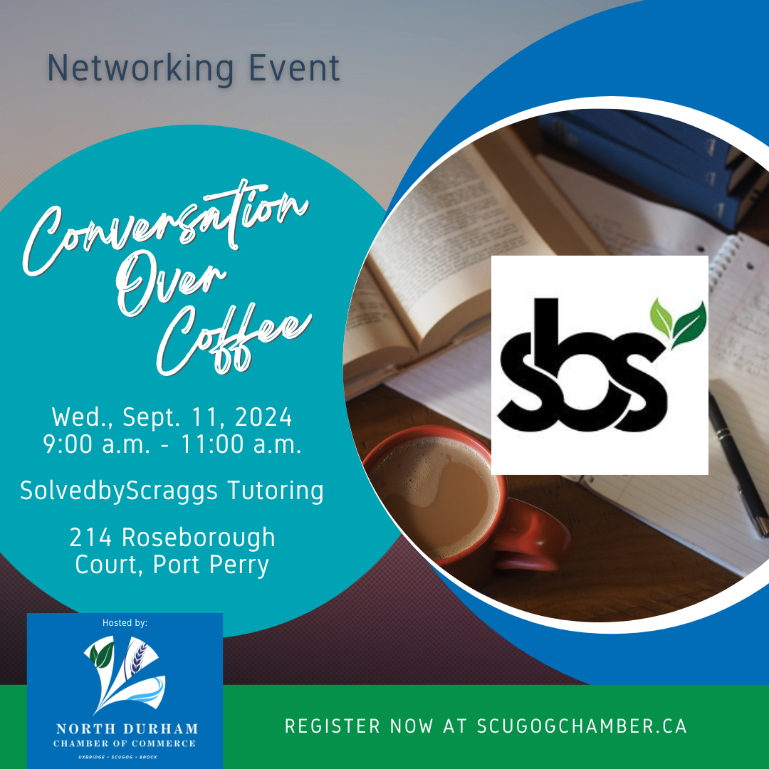 Start your morning with great company and a delicious cup of coffee at SolvedbyScraggs Tutoring! Conversation Over Coffee is a networking event that brings together members of the North Durham Chamber of Commerce community for a relaxed and engaging start to the day. It's free and open to everyone. Join us on Wednesday, September 11, 2024, from 9:00 a.m. to 11:00 a.m. at 214 Roseborough Court, Port Perry!🔵 Conversation Over Coffee - SolvedbyScraggs Tutoring